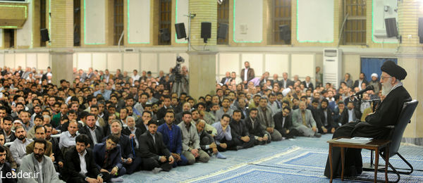 رهبر معظم انقلاب اسلامی در این دیدار که با حضور جمعی از شاعران و ذاکرین اهل بیت علیهم السلام برپا شد با تبریک ولادت حضرت زهرا سلام الله علیها و گرامیداشت تقارن این روز با میلاد امام خمینی (ره) درس بزرگ زندگی فاطمه زهرا سلام الله علیها را برای جامعه بشری، «تلاش»، «کوشش» و «پاک زندگی کردن» خواندند و افزودند: مجالس مذهبی فرصتی منحصر به فرد در بیان درسهای مهم زندگی ستارگان فروزان دین است و باید با انتقال محتوا و مضمون هنرمندانه، آگاهی بخش، بیدارگر، امیدوار کننده، وحدت آفرین و رعایت کامل حدود شرعی در مراسم مذهبی، این مسئولیت و فرصت را در خدمت مقابله با توطئه های پیچیده دشمنان اسلام و همچنین پیشبرد اهداف نظام اسلامی قرار داد.
